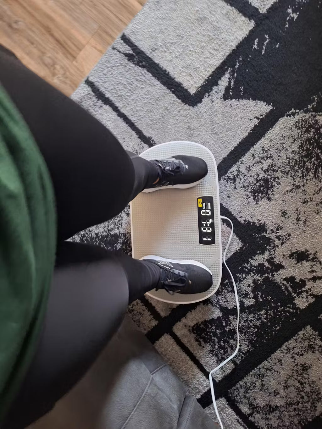This vibration plate does all the work—all you gotta do is stand there! Each session is just 10 minutes, or you can pop it on auto mode and it's even easier. I'm absolutely obsessed with this thing! I actually look forward to using it every day and I'm definitely sticking with it to see results.