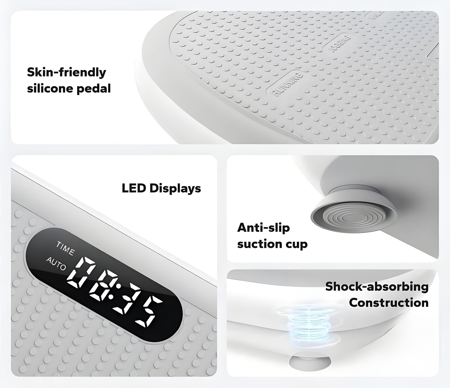 This vibration plate does all the work — all you have to do is stand there! Each session runs for 10 minutes, and I’ve been using it regularly. After just a few weeks, I’ve already lost 5 pounds and feel my legs and core getting more toned. I absolutely love this plate and can’t wait to keep going! Plus, it even came with a free massage gun, which is perfect for relaxing my muscles after each session.